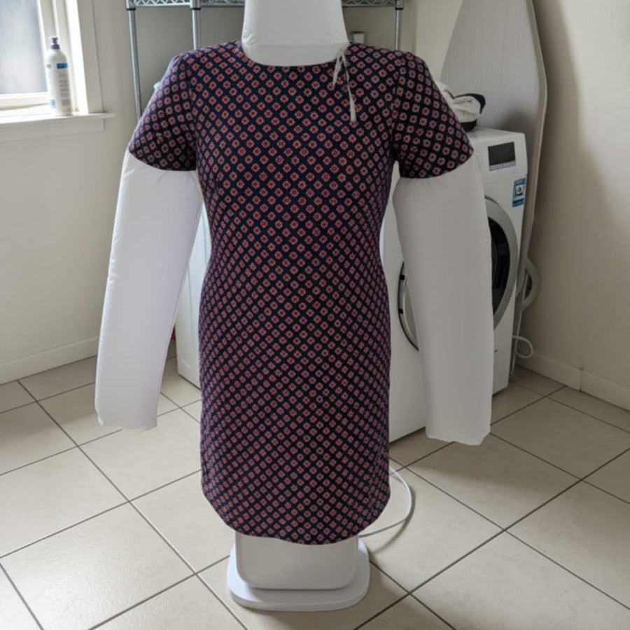 The shirt balloon has two zippers on each side. The more you unzip them, the wider and tighter the fit becomes – essential for removing wrinkles. If you need more length, adjust the upper telescopic rods.