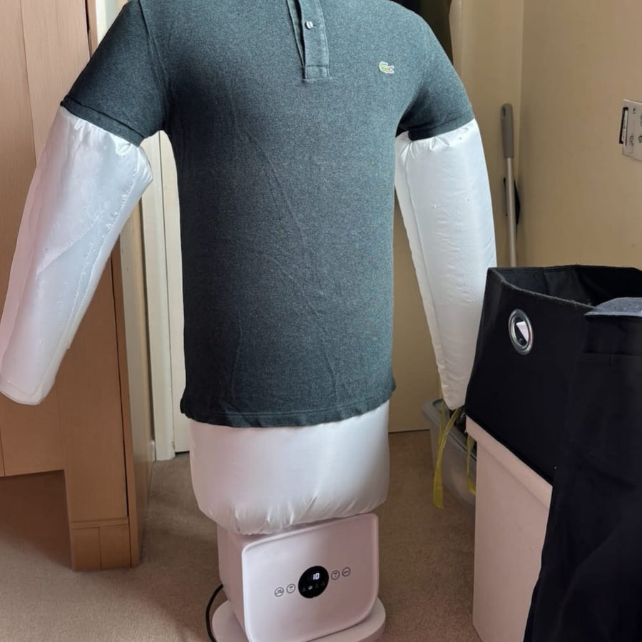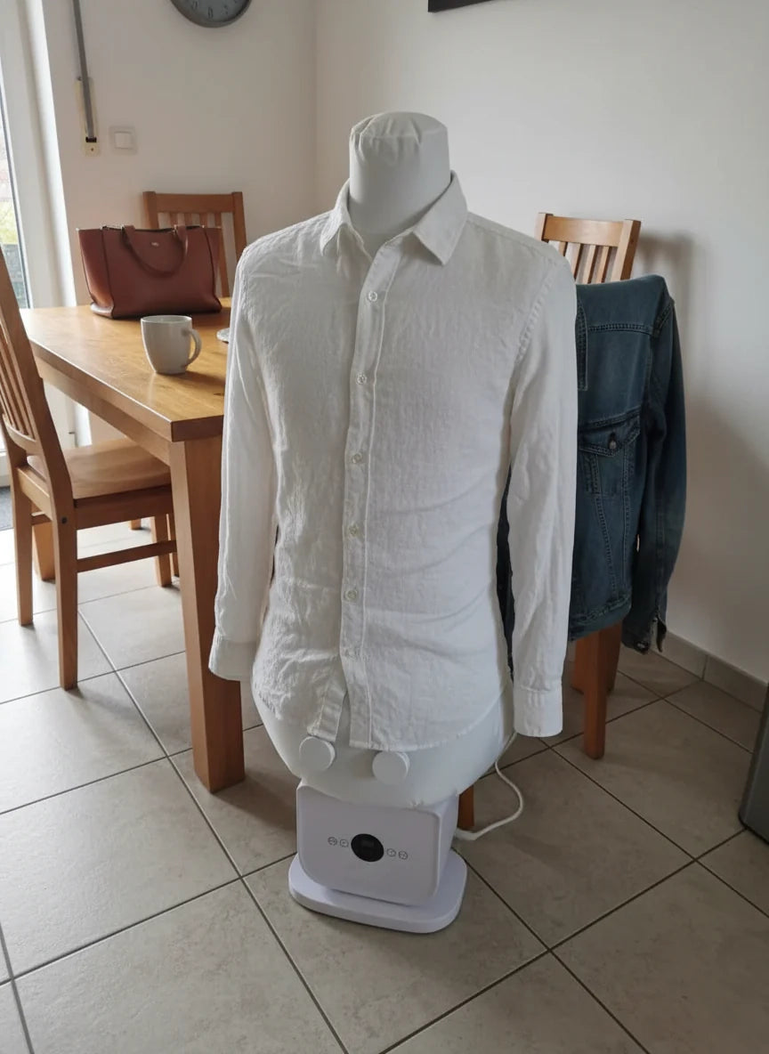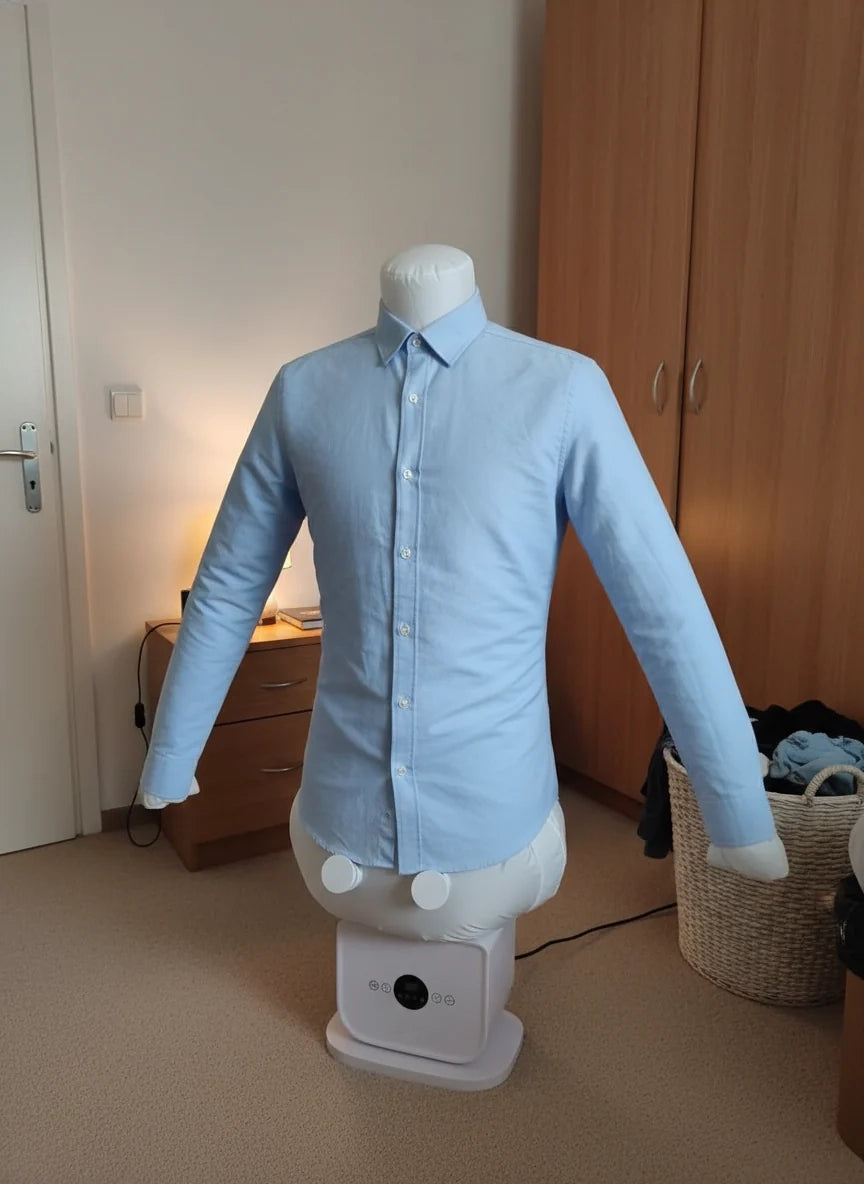 Simply slip on your freshly washed or damp shirt, power on, and in just 8 minutes, on autopilot, it's perfectly dry and ironed!